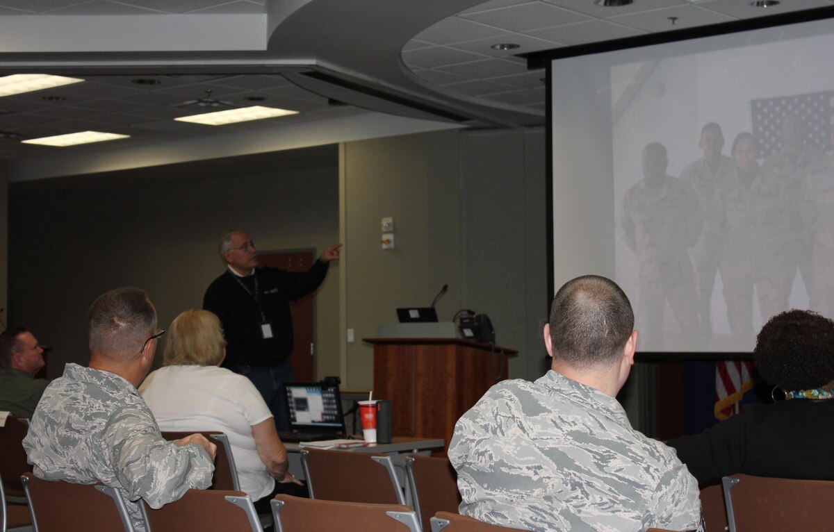 Bob Orton, Air Reserve Personnel Center lead assignment technician, addresses the audience during ARPC’s November Leadership Seminar Nov. 12, 2015, on Buckley Air Force Base, Colo. (U.S. Air Force photo/Tech. Sgt. Rob Hazelett)